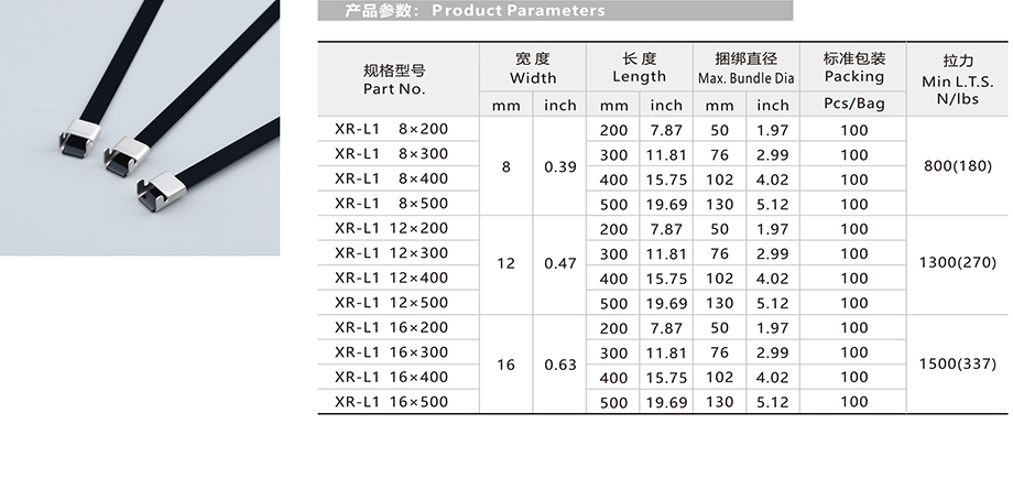 噴塑不銹鋼扎帶-滾珠自鎖式帶腳加強型